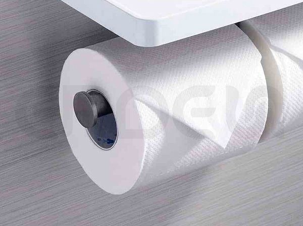- Tempat ini memiliki penahan untuk mencegah tisu toilet jatuh ke lantai.